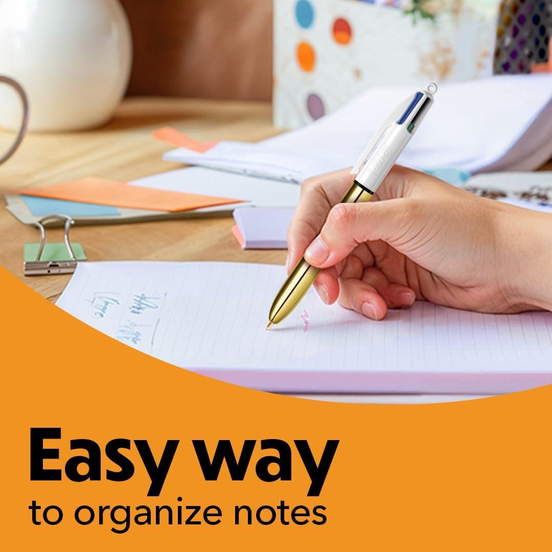 BIC 4-Color Shine Retractable Ballpoint Pens bring a touch of fun to your writing tasks. Each multicolor pen features four vibrant ink colors, perfect for school, work, or home. Add some flair to your gold office supplies with these multicolored pens. Perfect for those who appreciate stylish gold desk accessories and need a multi color pen for varied tasks.