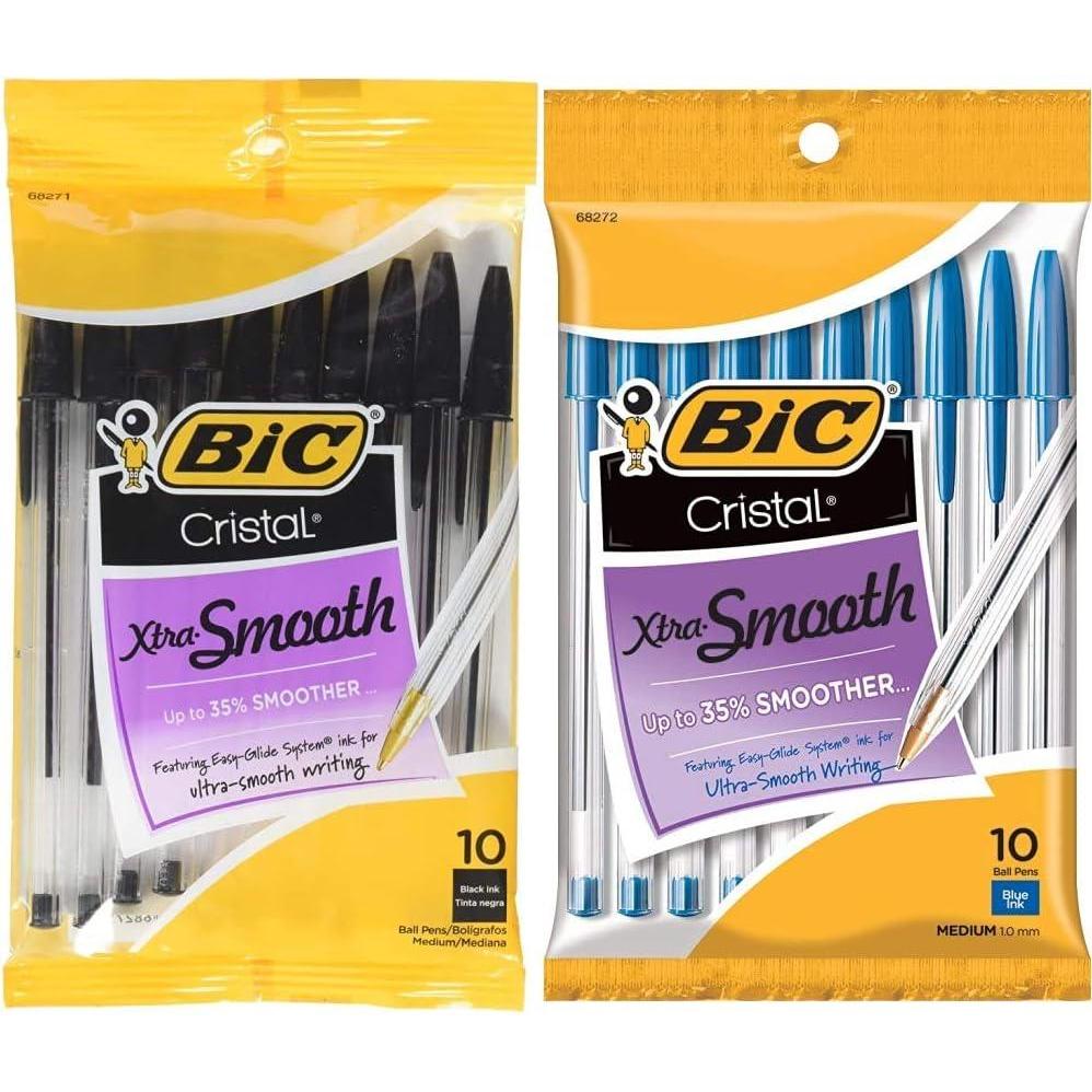 BIC Cristal Xtra Smooth Ballpoint Pens, Medium Point (1.0mm), Black and Blue, 20-Count(Black)
