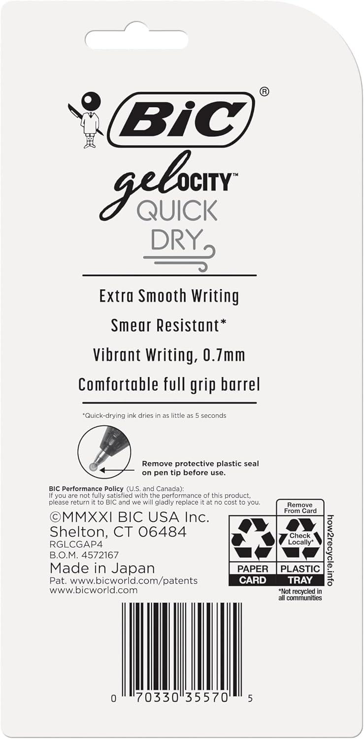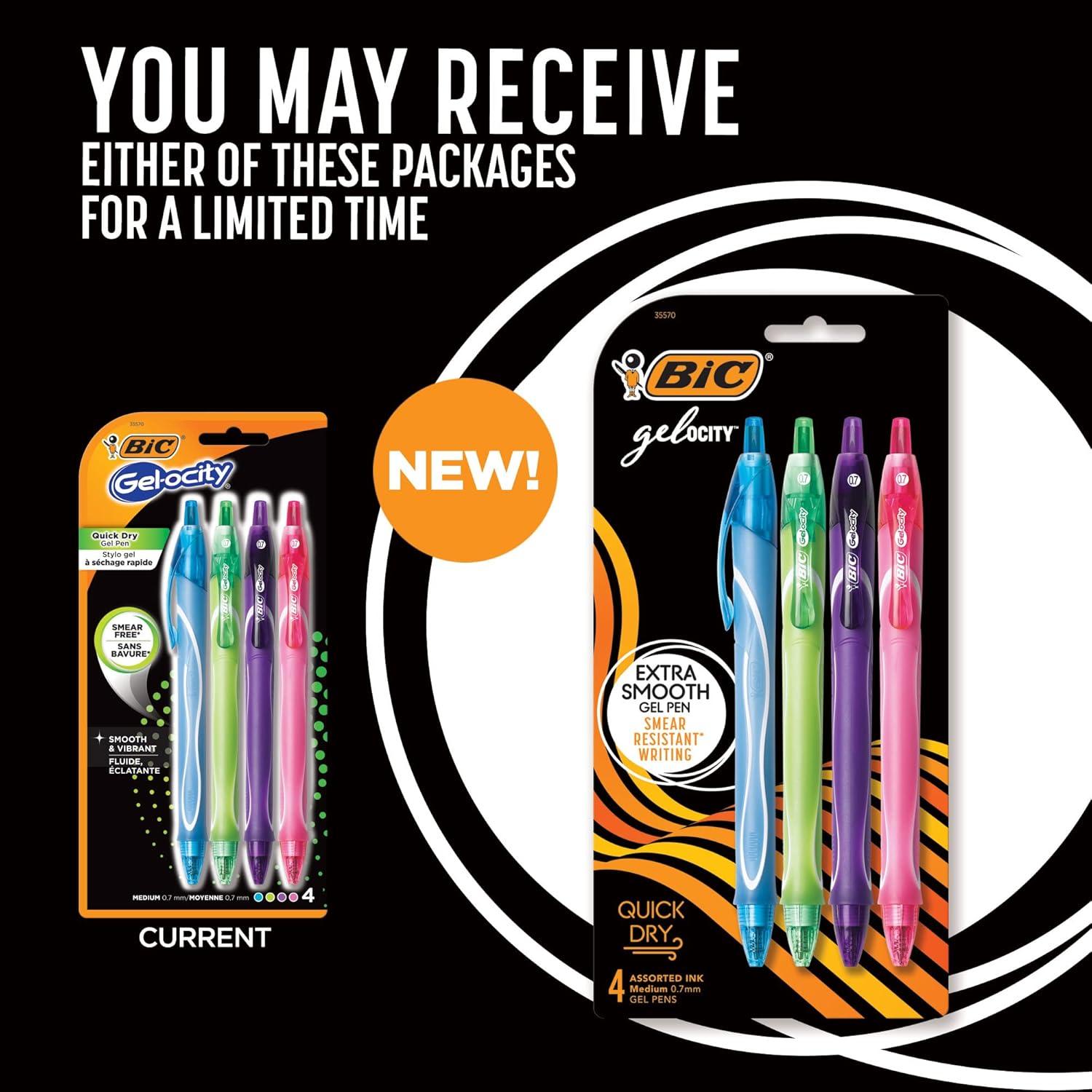 BIC Gel-ocity Quick Dry Fashion Retractable Gel Pens, Medium Point (0.7mm), 4-Count Gel Pen Set, Packaging May Vary(4 Count (Pack of 1))