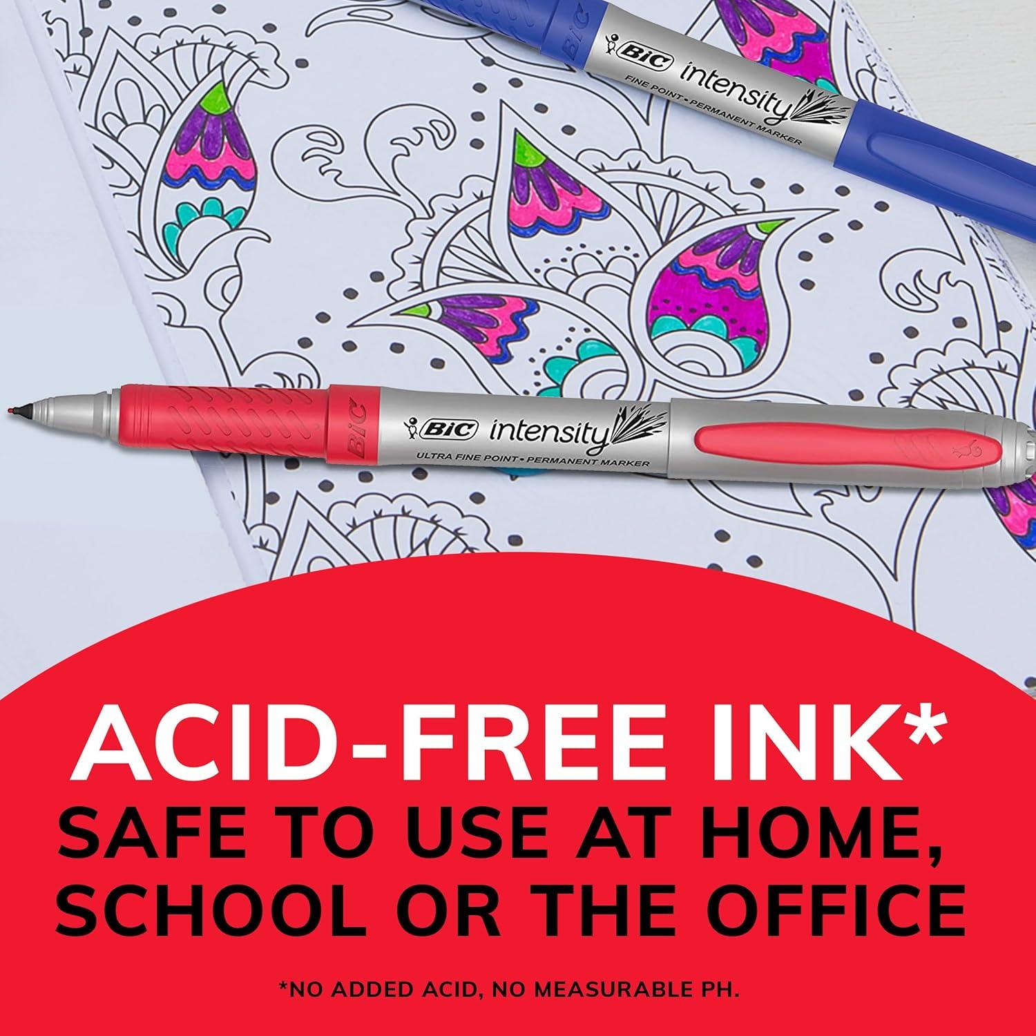 BIC Intensity Black Permanent Markers, Fine Point, 200-Count Pack of Black Markers With Non-Slip Grip for Comfort and Control(Ultra Fine Tip Blue Ink Markers)