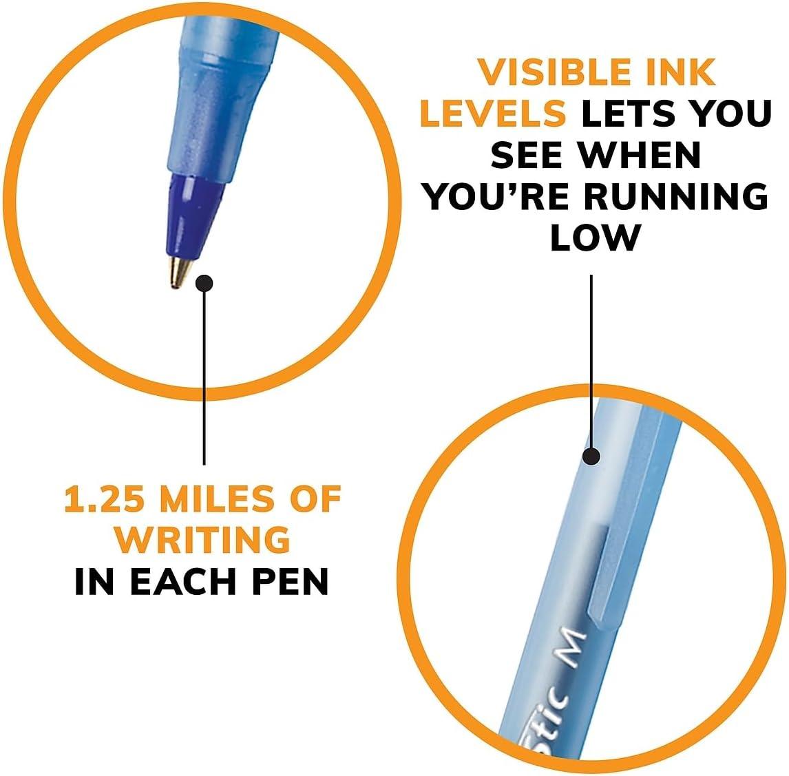 Combine longevity, consistent performance and smooth writing with BIC Round Stic Xtra Life Blue Ballpoint Pens. These 1.0mm medium point pens are ultra long lasting, making them the No. 1 selling ballpoint pens in the US*. Creating clear, vivid lines, they’re the ideal blue pens for writing lists, taking notes, journaling and more. The flexible round barrel fits snugly in your hand and offers a controlled yet comfortable hold, making it ideal for prolonged writing sessions. Plus, these writing pens provide consistent ink flow, letting your write smoothly and evenly. With this 500-count blue ink pens bulk pack, you can stock up on dependable BIC ballpoint pens. Looking for reliable pens for school or office supplies? Choose BIC Round Stic Xtra Life Blue Ballpoint Pens for a high-quality, affordable product you can trust — write first time, every time. *The NPD Group/Retail Tracking Service and Commercial Tracking Service, U.S., based on actual unit sales, 12ME March 2024 combined