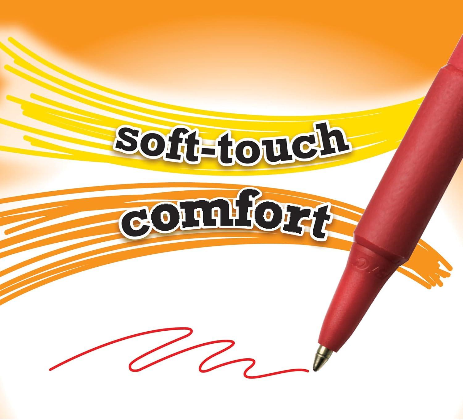 imageBIC Soft Feel Blue Retractable Ballpoint Pens Medium Point 10mm 12Count Pack Blue Pens With SoftTouch Comfort GripRed