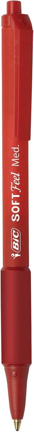 BIC Soft Feel Blue Retractable Ballpoint Pens, Medium Point (1.0mm), 12-Count Pack, Blue Pens With Soft-Touch Comfort Grip(Red)