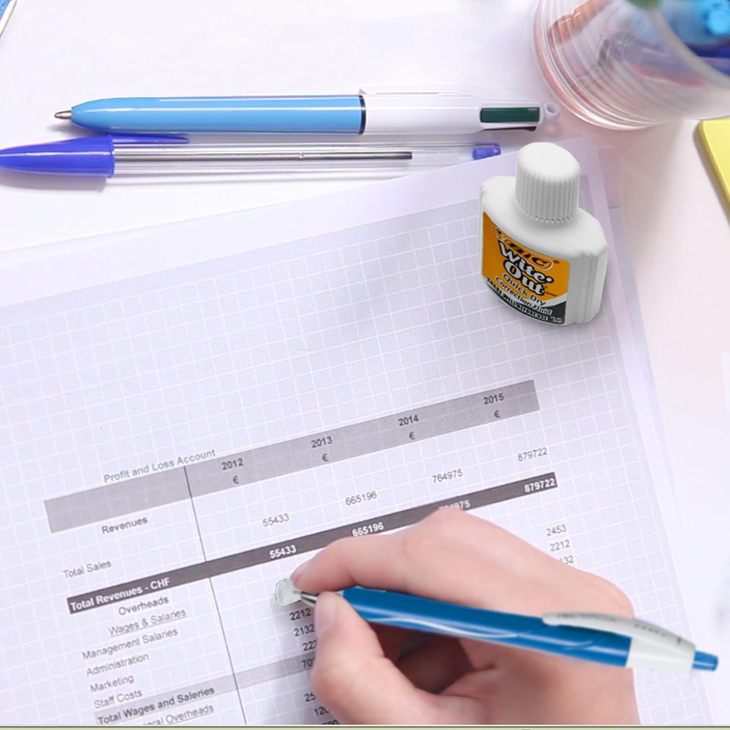 BIC Wite-Out Brand Quick Dry Correction Fluid, 20 mL, White, Goes On Easy With A Reduced Dry Time, 4-Count