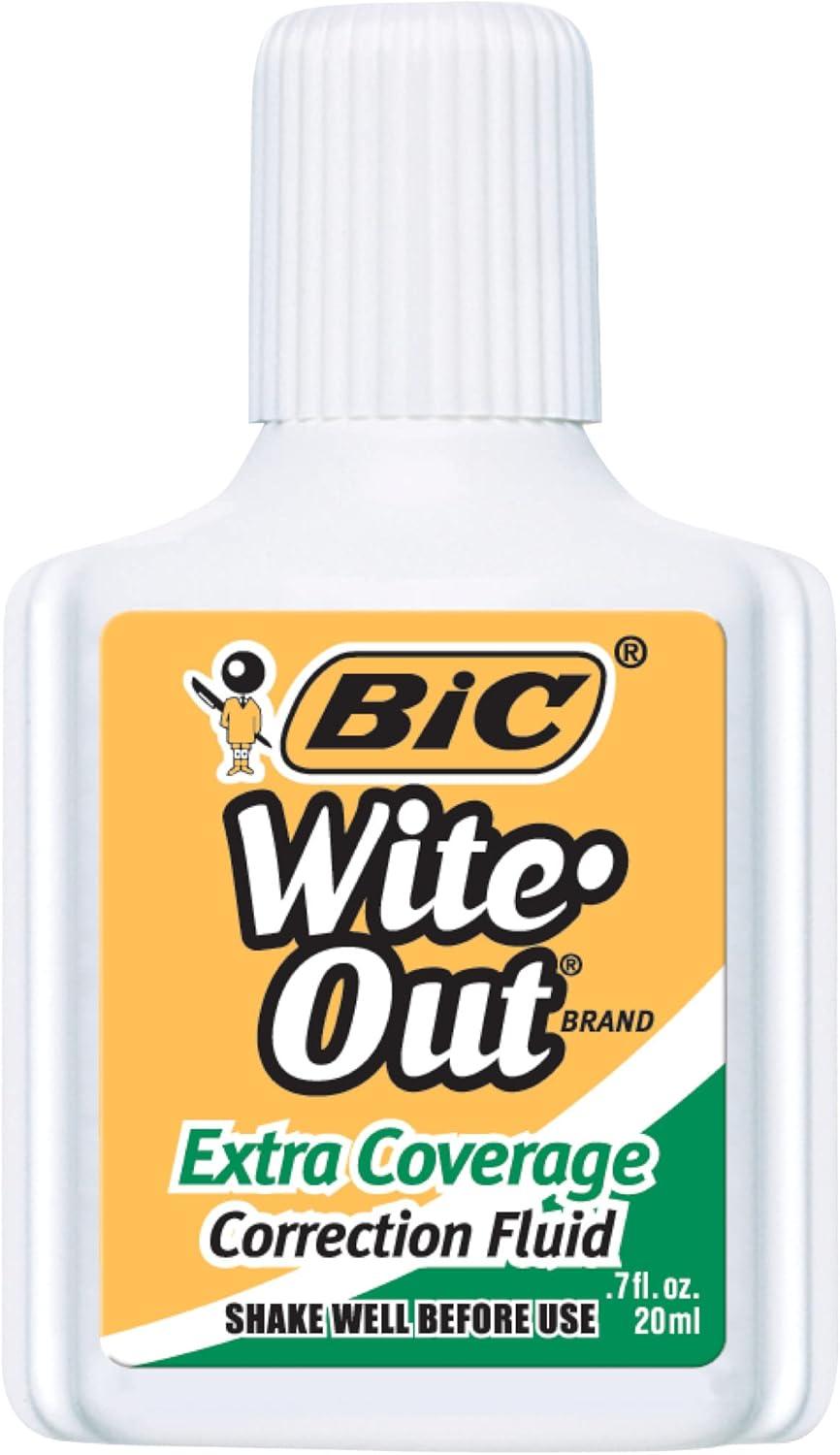 BIC Wite Out Brand Extra Coverage fluid covers the toughest mistakes including red ink and permanent marker